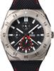 Tutima Glashutte M2 Chronograph wrist watch model 6451-02. Automatic movement Cal. Tutima 521 with date calendar. Titanium case, screw-down crown and case back, 0-60 rotating bezel. Sapphire crystal. Black dial with luminous hands and markers. Black kevlar strap with red color stitching. Water resistant to 300 meters.