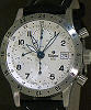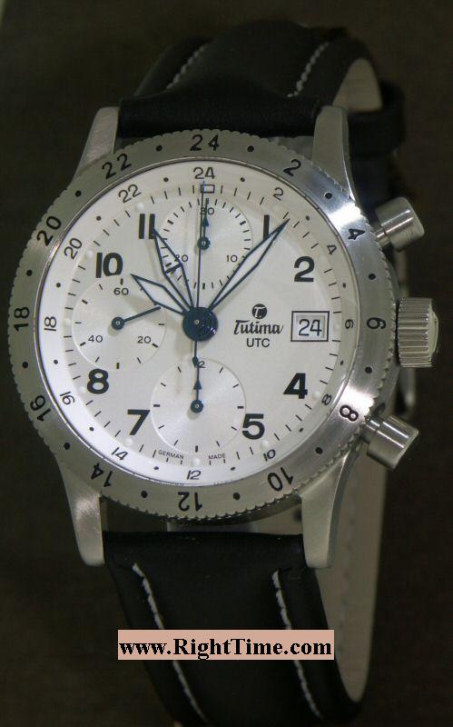 New factory refurbished, Tutima German "Pilot FX" series 3 time zone automatic chronograph, powered by Swiss ETA 7750 modified chronograph movement with second time (24hour hand) indicator. Outside rotating 24hr bezel will point 3d time zone in relations to the 24hr hand. Satin finish stainless steel case.