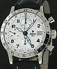 Date calendar, window display. Second Time Zone indicator. 12 hr, 30 min, 60 sec registers chronograph.