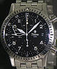 Tutima Military Air Force Chronograph. This watch is powered by famous LEMANIA Cal. 5100 17 jewels Swiss Automatic movement with chronograph, military 24 hour format hand, Day/Date calendar functions. Pure titanium case with screw-down crown and rotating 60 min bezel. Black dial with Arabic numerals, luminous hands and markers. Black leather "Bund" style strap. Water resistant to 200 meters.