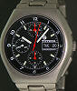 12 hr, 60 min, 60 sec, registers chronograph. 24 hour format ( military ) hand. Day/Date calendar, window display.