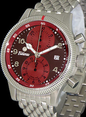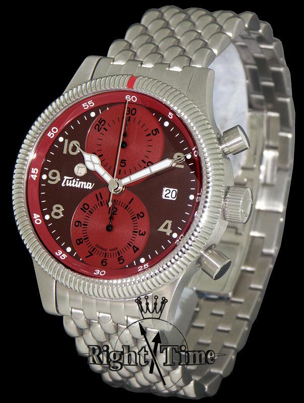 Tutima Grand Classic Flieger military chronograph, with red dial, over-sized sub-dials,luminous hands, housed in new 43mm steel satin finish case with bracelet