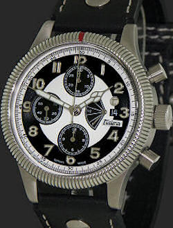 Big, bold and beautiful is the description of this Tutima Grand Classic Flieger military chronograph, with black and white dial, black sub-dials and luminous hands, housed in new 43mm steel satin finish case