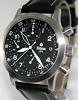 Tutima Automatic chronograph watch from Tutima FX UTC Series. ETA Valjoux 7750 Swiss Automatic chronograph movement with date calendar and Second Time Zone indicator. Stainless steel case with plain bezel, screw-down crown and case back. Black dial with luminous hands and Arabic numerals. Black leather watch band. Available with metal bracelet.