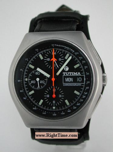 LEMANIA Cal. 5100 17 jewels Swiss Automatic ( Powered by wrist movement ). 12 hr, 60 min, 60 sec, registers chronograph. 24 hour format ( military ) hand. Day/Date calendar, window display.