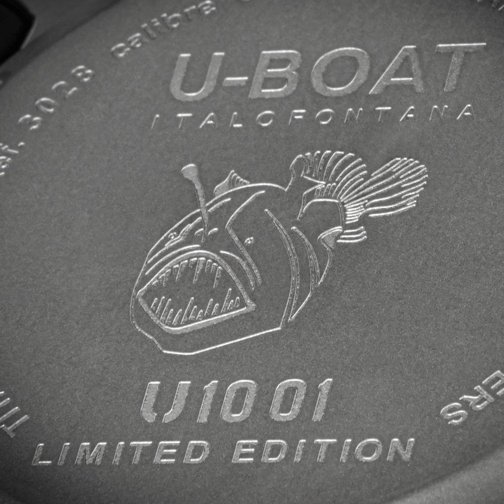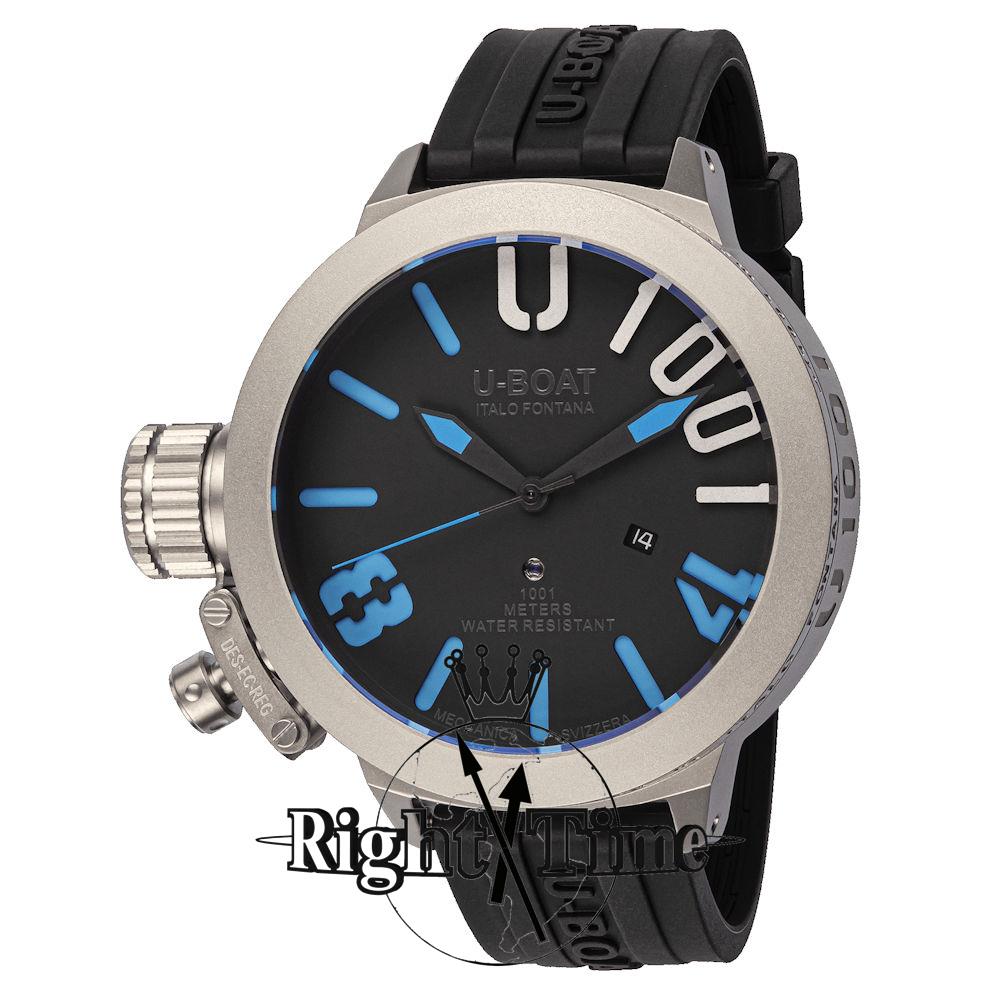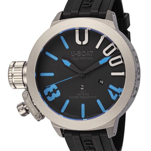 The Iconic 1001 i a Limited edition of 30 pieces. Italian made U-Boat Classico 55 automatic 55.00mm titanium case with black dial and blue accents. Comes on a black rubber band. Water resistant to 1001 meters