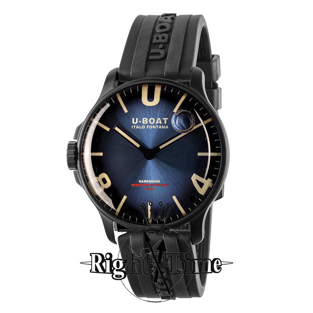 U-Boat Darkmoon 44mm Blue IPB Soleil model 8700/B Inspired by the dark side of the moon. Stainless steel IPB treated case is completely filled with a special oil that emphasizes the blue metallic dial with soleil finishing. Case back with locking ring system for quick battery replacement.
