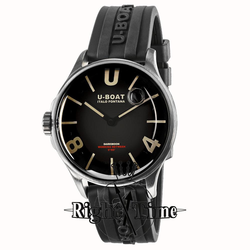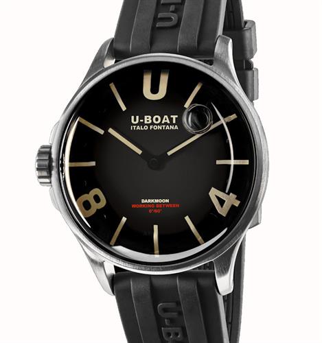 U-Boat Darkmoon 40mm Black model 9018 Inspired by the dark side of the moon. Stainless steel case is completely filled with a special oil that emphasizes the black dial. Case back with locking ring system for quick battery replacement.