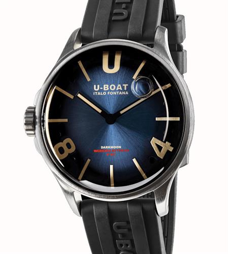 U-Boat Darkmoon 40mm model 9021 Inspired by the dark side of the moon. Stainless steel case is completely filled with a special oil that emphasizes the blue dial. Case back with locking ring system for quick battery replacement.