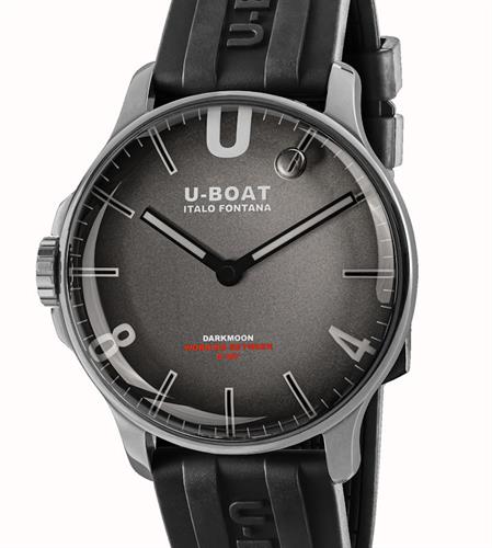 U-Boat Darkmoon 44mm model 9149 Inspired by the dark side of the moon. Stainless steel case is completely filled with a special oil that emphasizes the grey dial. Case back with locking ring system for quick battery replacement.