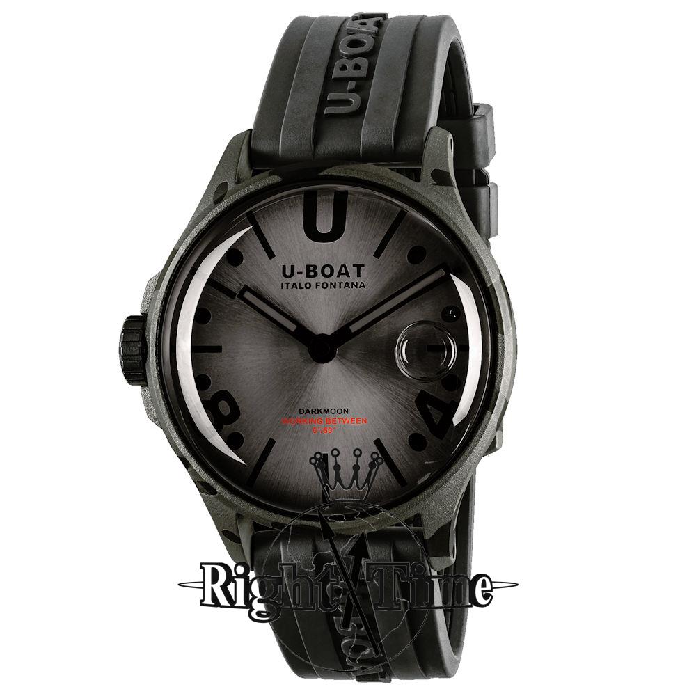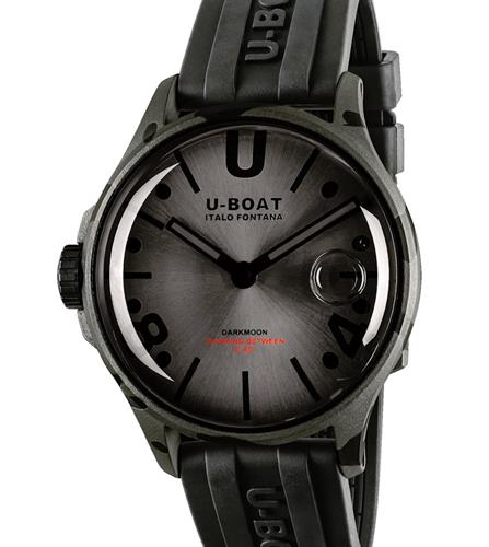 U-Boat Darkmoon 44mm Camouflage Soleil model 9550. Inspired by the dark side of the moon. Stainless steel black PVD plated case is completely filled with a special oil that emphasizes the grey metallic dial with soleil finishing. Case back with locking ring system for quick battery replacement.