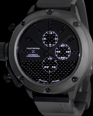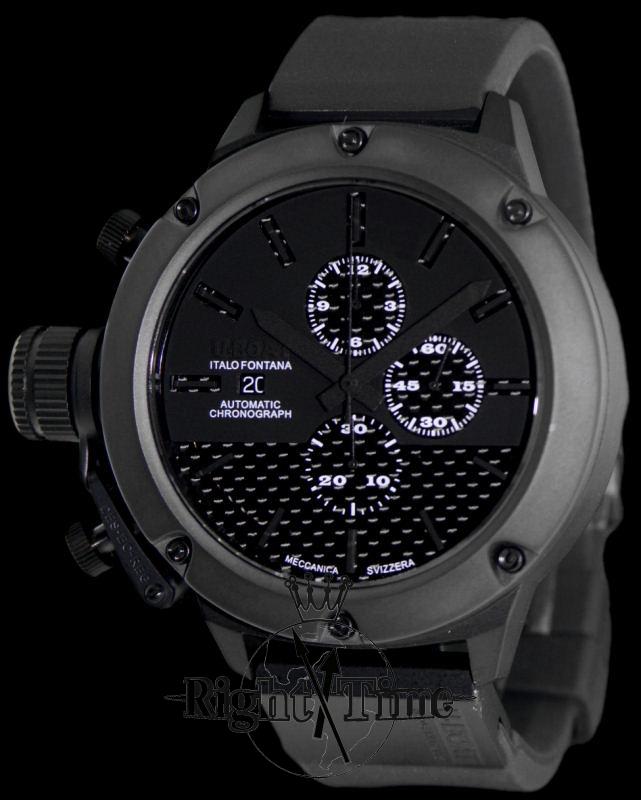 Limited edition to 300 pieces, grandiose, Italian made U-Boat Classico 55 automatic chronograph model in 52.00mm all black titanium case with jet black multilayer sanwich style dial with pure carbon fiber, powered by Swiss made ETA7750
