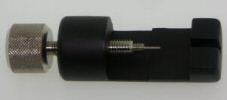 This simple tool helps to remove the cotter or straight pins from metal bracelet (up to 24.00mm wide) links by rotating the screw. Casing made of black coated solid brass, with metal screw pushing pins out.