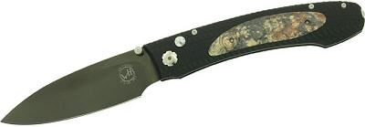 William Henry EDC E10-2 knife features tungsten-carbide coated blade in aluminum frame with box elder burl inlay