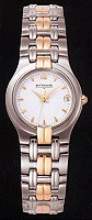 Wittnauer Lady`s wrist watch from Wittnauer Astor Collection. Swiss quartz movement with date calendar, stainless steel case and watch bracelet with gold plated accents and center opening deployment buckle, white dial with gilt color markers, sapphire crystal.