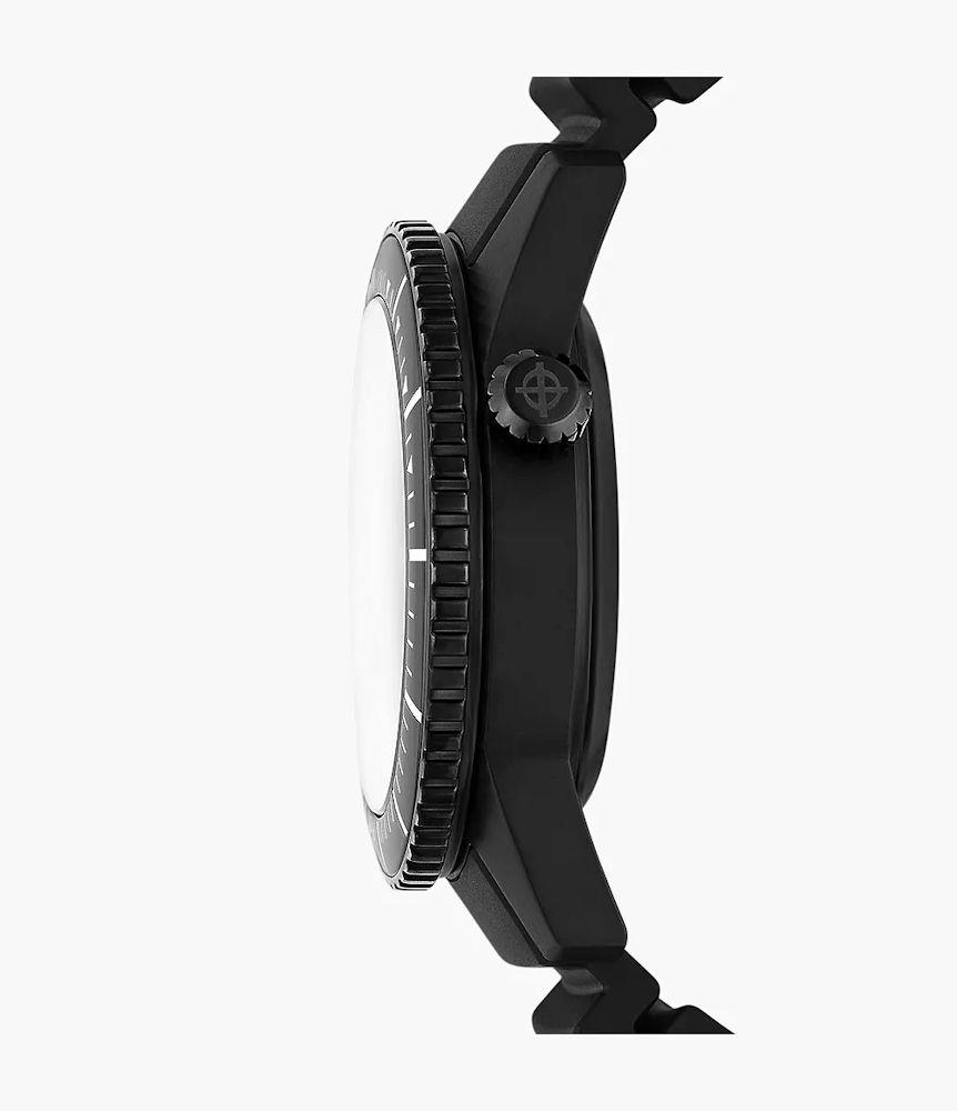 Inner rotating 24 hour, operated by separate crown. Black color.